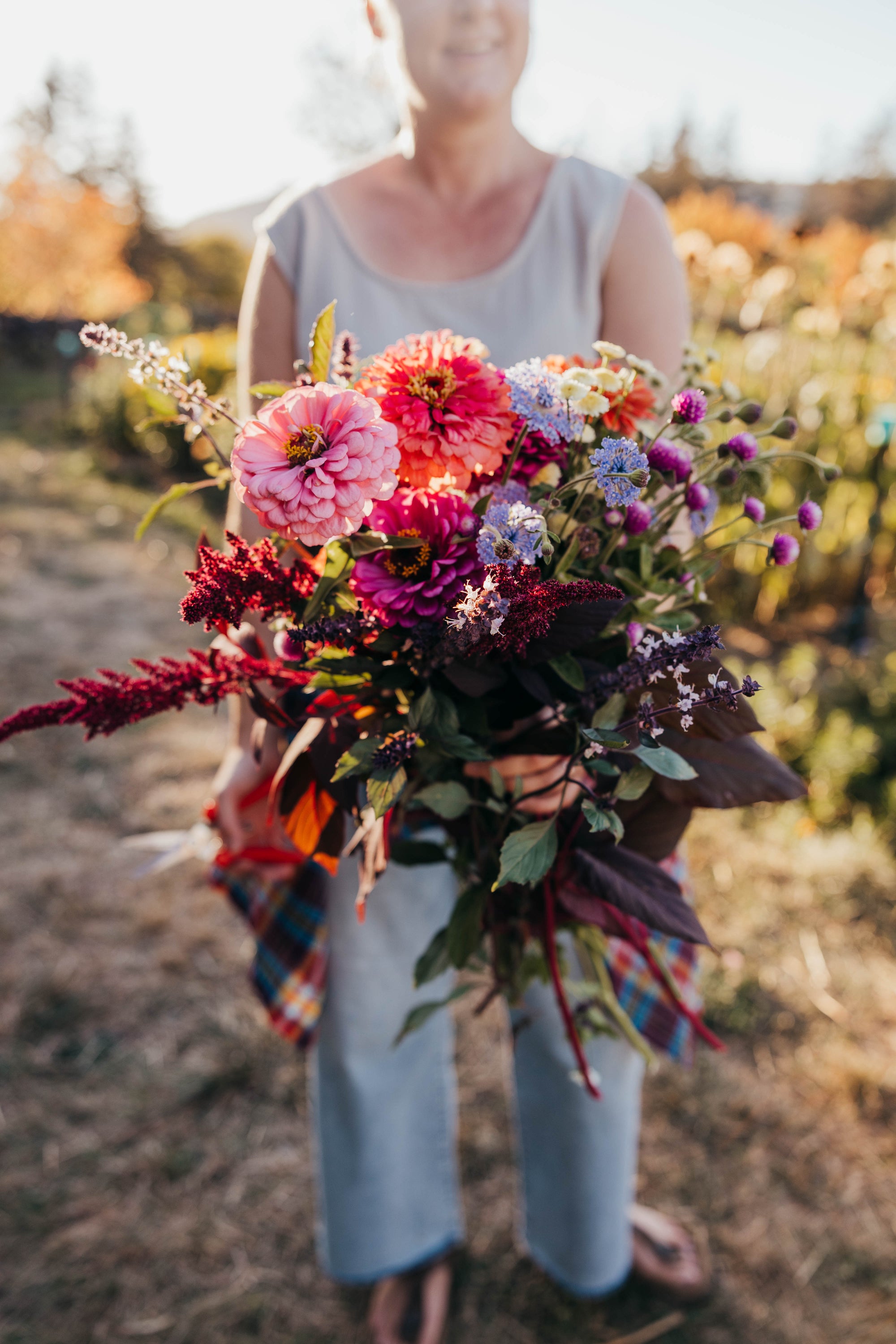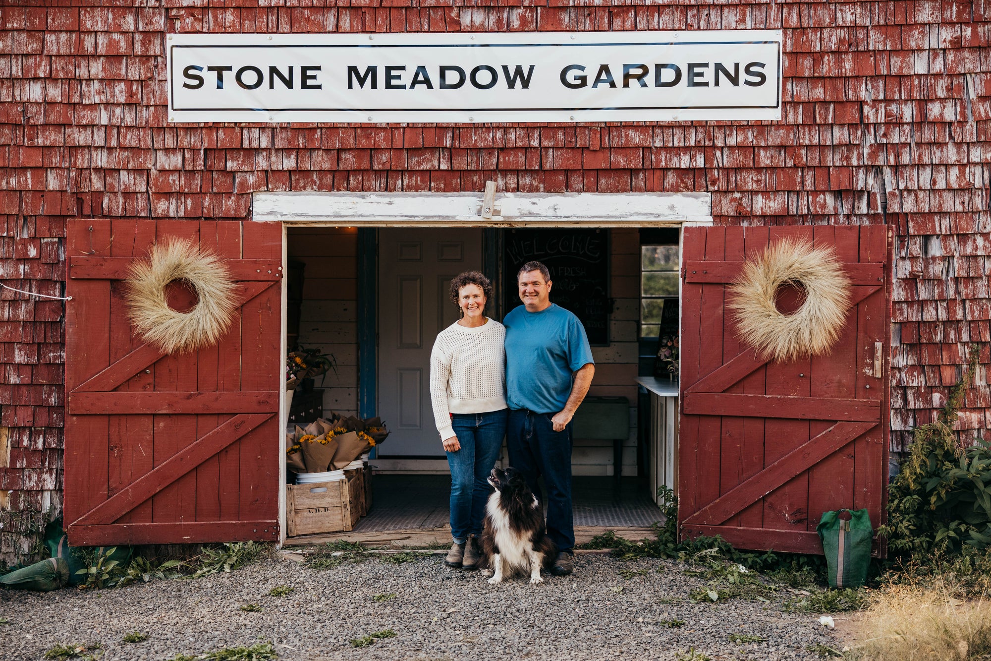 Hey there! I’m Sarah, and alongside my husband Carl (and our dog, Paco!), we’re the farmers at Stone Meadow. For the past eleven years, working and farming side by side, we’ve been bringing joy and connection to our community with the power of flowers.
